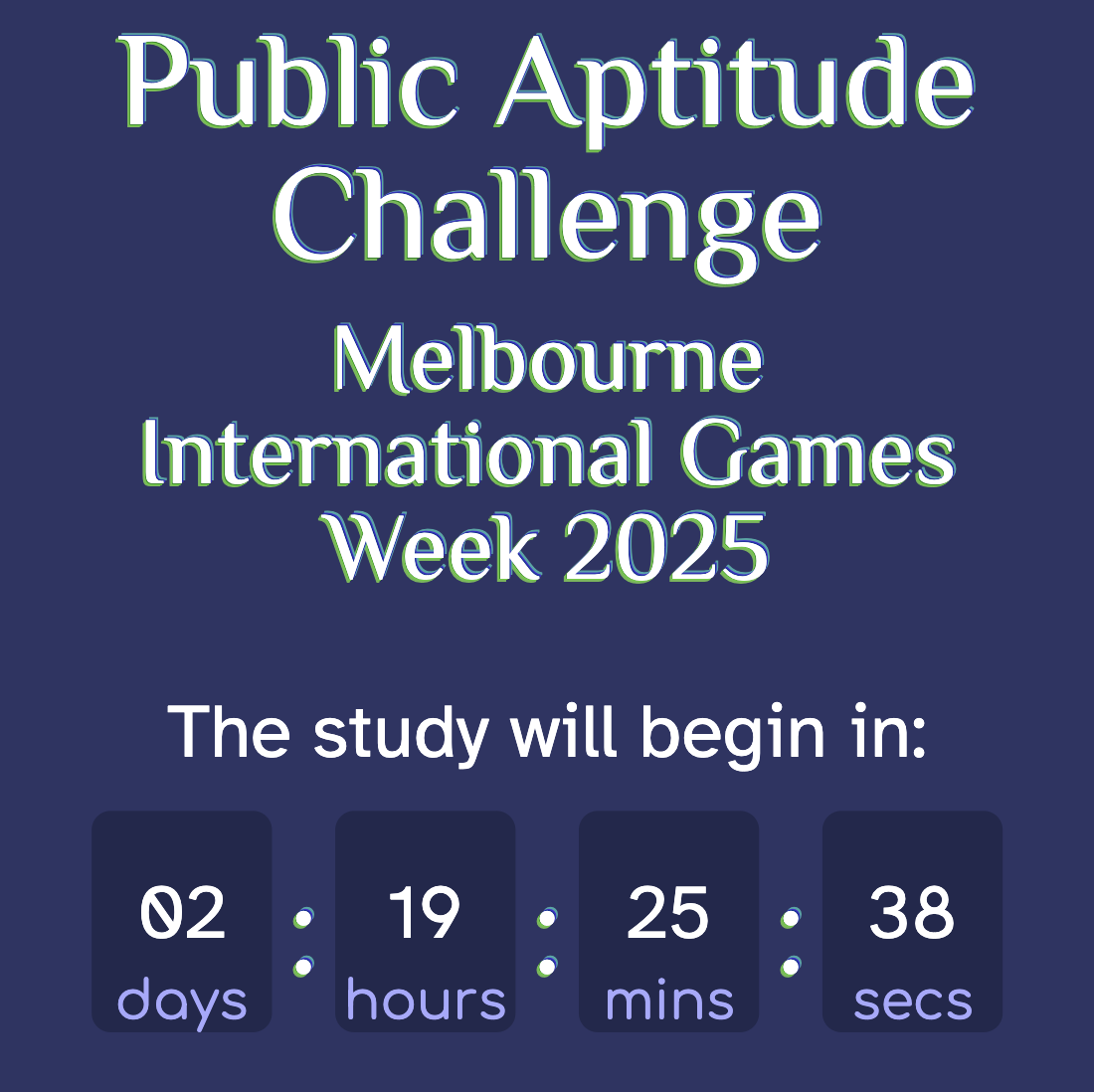 Congratulations to all participants in our latest public aptitude study in partnership with The Game Expo, especially those 11 teams who managed to complete the challenge. Thank you to everyone for providing valuable data for our research. We look forward to collecting more data from you with our next study. Sadly Port Play has been postponed until 2026. We are hoping to be able to provide a small demo study on May 4th, however this plan may change. We will keep you posted.